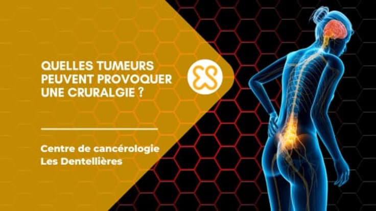 Certaines tumeurs cancéreuses peuvent être à l’origine d’une cruralgie, même si cela est plutôt rare. Les tumeurs de la colonne vertébrale, qu’elles soient primaires ou secondaires (métastases), peuvent en effet exercer une pression sur le nerf crural, provoquant ainsi des douleurs. Les tumeurs pelviennes, en particulier celles affectant les os ou les tissus mous avoisinants, peuvent aussi parfois entraîner une cruralgie.