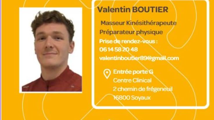 Recrutement Centre Clinical - Angoulême 18/09/2023 Arrivée Valentin BOUTIER - Masseur kinésithérapeute, préparateur physique Nous sommes heureux de vous annoncer l'arrivée de Valentin BOUTIER, masseur kinésithérapeute et préparateur physique. Prise de rendez-vous au : 06 14 58 20 48 Vous avez aimé cette page ? Partagez-la !