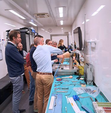 Le MobileLab Arthrex est un laboratoire mobile de haute technologie spécialisé dans la formation en arthroscopie. Cette installation itinérante met à disposition des soignants des spécimens permettant de reproduire une intervention chirurgicale dans les conditions opératoires proches du réel.