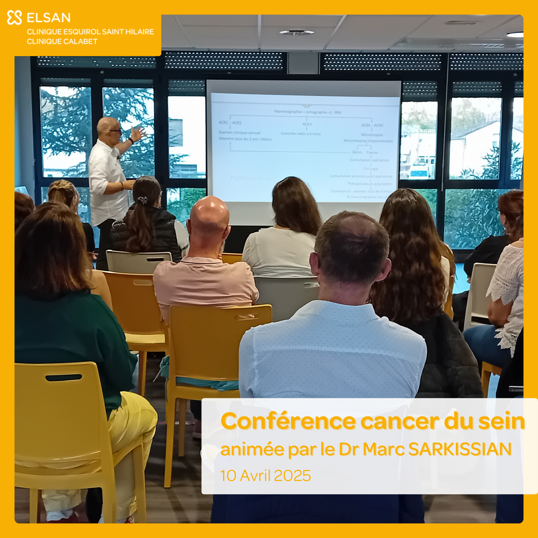 Animée par le Dr Marc Sarkissian, chirurgien sénologue à la Clinique Esquirol Saint Hilaire, cette rencontre du 10 avril dernier a réuni une vingtaine de participants issus de différents services. L’objectif : mieux comprendre ce parcours de soins et les enjeux d’une prise en charge globale des patientes touchées par un cancer du sein.