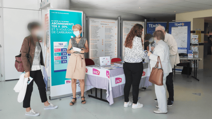 En partenariat avec la SNCF et KEOLIS TEMPO la Clinique Esquirol Saint Hilaire proposait à ses professionnels , patients et visiteurs une journée d’information sur les transports en communs et leurs offres possibles le Mardi 20 septembre 2022 de 9h30 à 16h dans le Hall des consultations.