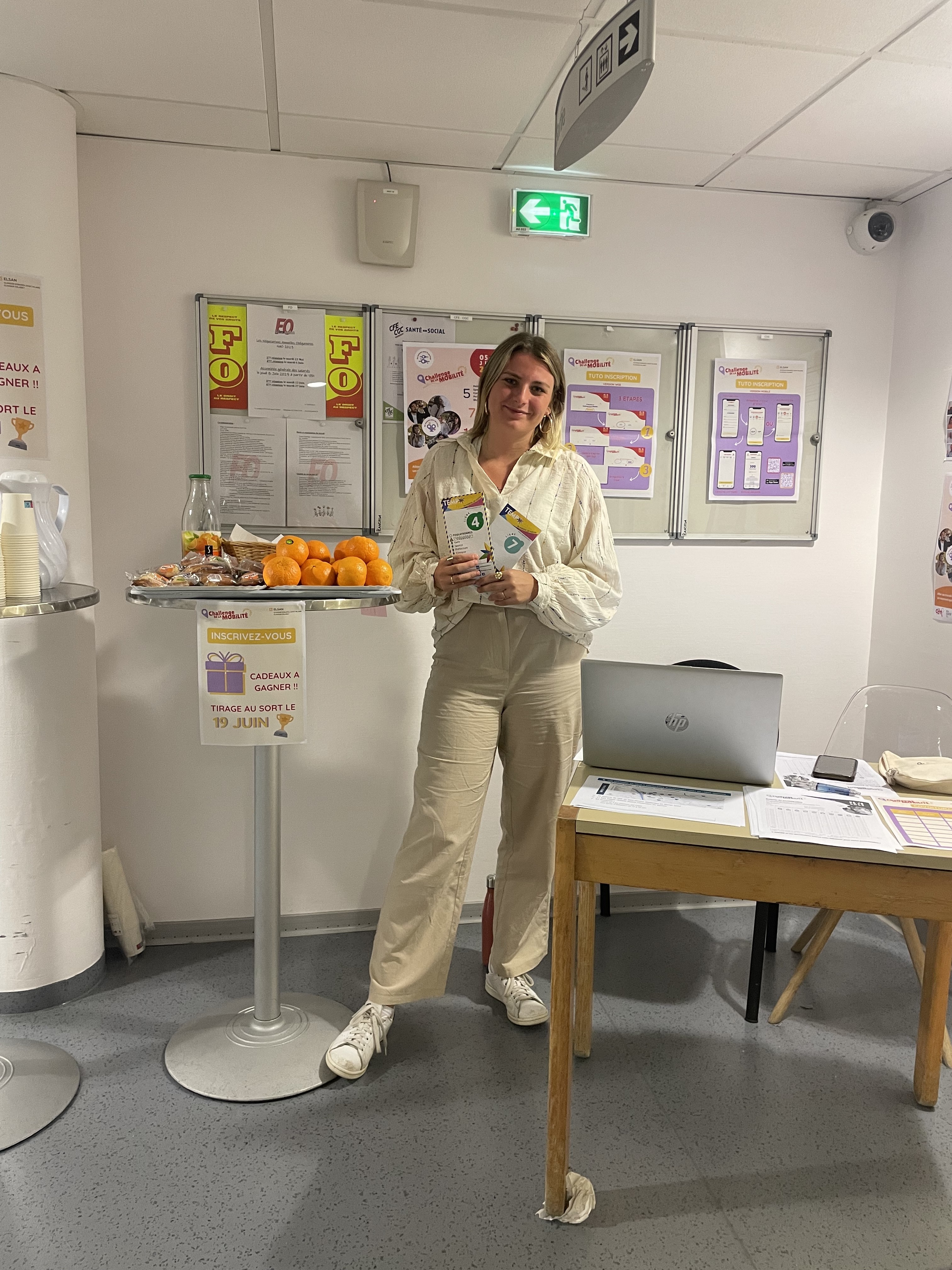 Un petit déjeuner d'accueil est proposé le premier jour du Challenge, le 5 juin, afin d'informer tous les professionnels de l'établissement qui souhaitent participer. Ce point info est destiné à renseigner sur les formalités d'inscription, sur les possibilités de transports en commun autour de l'établissement et autres alternatives à l'utilisation de la voiture, ou encore mettre en relation les candidats au covoiturage, affichage d'une carte de géolocalisation...