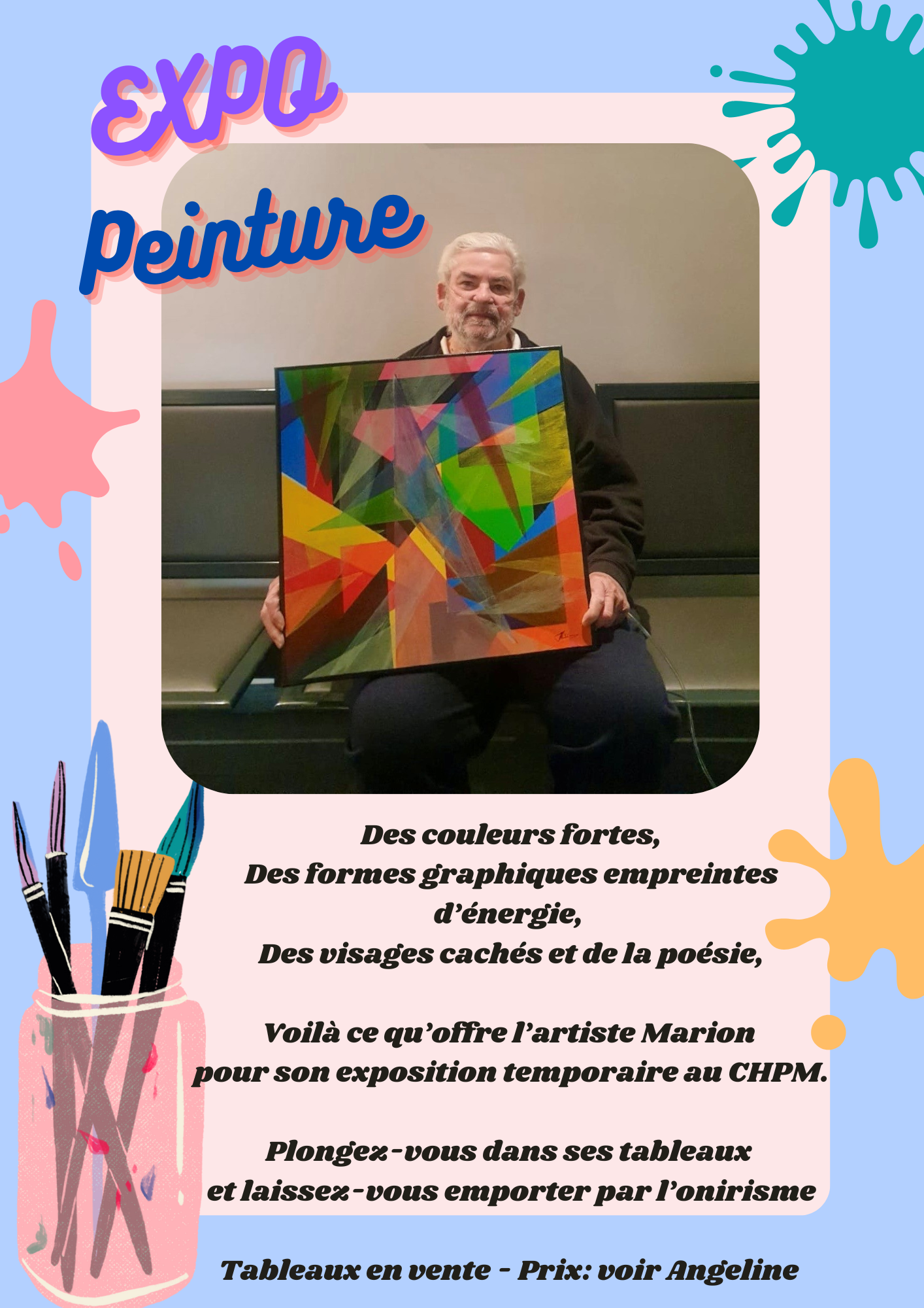 L'artiste Marion nous a proposé ses œuvres pleines de couleurs et d'énergie, à l'inspiration poétique.