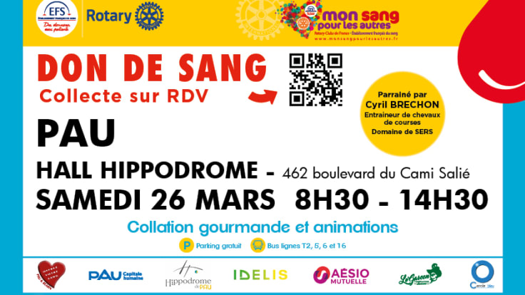 Prise de RDV en ligne possible : https://mon-rdv-dondesang.efs.sante.fr/collecte/45977/sang/26-03-2022