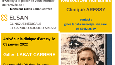 Le comité de direction (CODIR) et l'équipe RH de la clinique d'Aressy se renforcent avec l'arrivée de Gilles LABAT-CARRERE, Chargé de Mission Ressources Humaines. Nous lui souhaitons la bienvenue...
