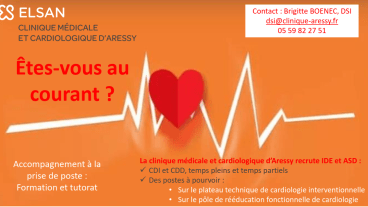 La Clinique Médicale et Cardiologique d'Aressy, groupe Elsan, #RECRUTE des #Infirmier(e)s et des #Aides-soignant(e)s, CDI et CDD.