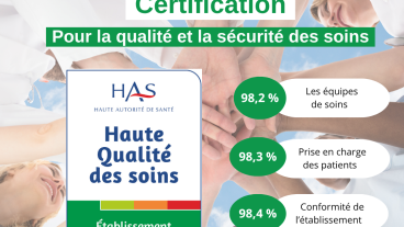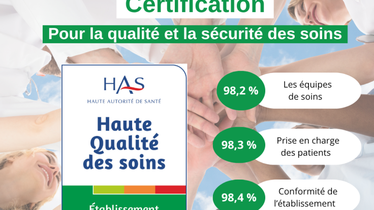 Cette certification est une étape clé dans notre mission : Offrir des soins performants en garantissant la qualité et la sécurité.