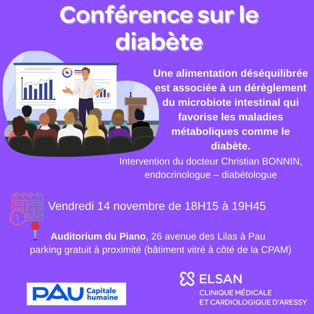Conférence sur le diabète le 14 novembre 2025 à 18h15 - Auditorium du Piano CPAM PAU