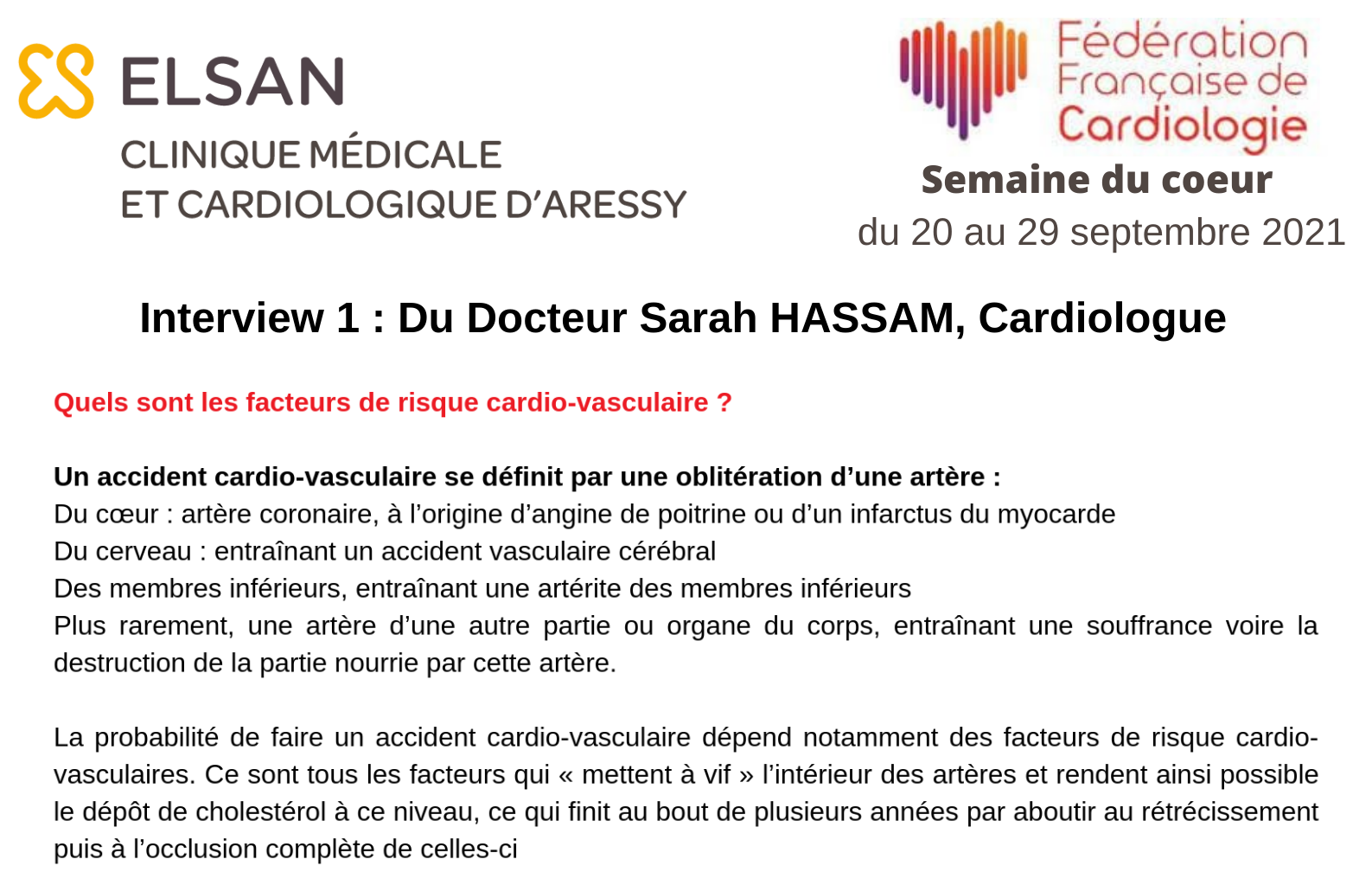 Le Docteur Sarah Hassam, Cardiologue au sein de la clinique médicale et cardiologique d'Aressy, répond à vos questions à l'occasion de la semaine du Coeur qui se déroule du 20 au 29 septembre 2021 ?