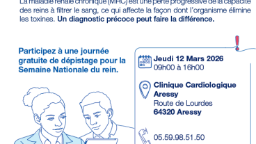 ℹ️ Préserver sa santé rénale est un enjeux collectif. Près d'une personne sur 10 est concernée par une maladie rénale sans le savoir. Un diagnostic précoce peut faire la différence !
