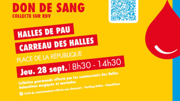 ❣ #MonSangPourLesAutres s’installe aux Halles de Pau le jeudi 28 septembre de 8h30 à 14h30.
