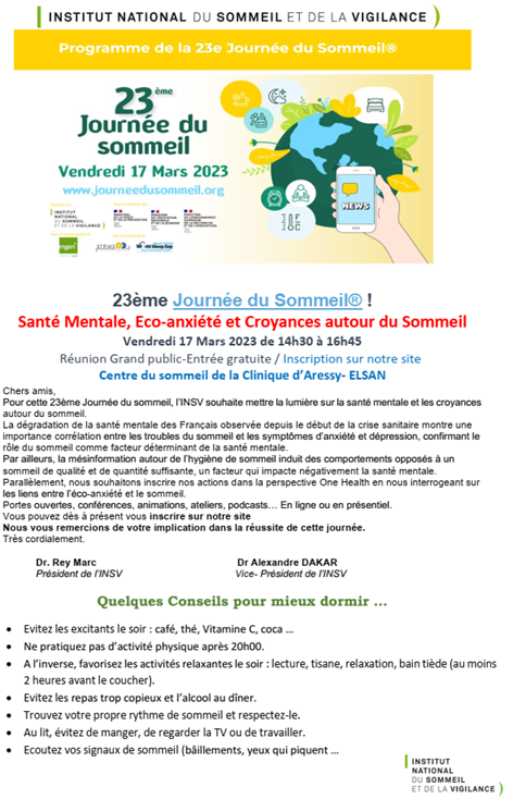 Journée du sommeil le 17 mars 2023 => Inscriptions en cours !