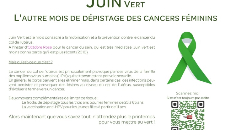 "Juin Vert" est le mois consacré à la mobilisation et à la prévention contre le cancer du col de l'utérus.