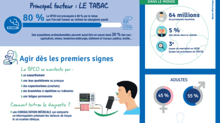 Nous vous partageons cette infographie destinée à faire connaître la #BPCO (Broncho-Pneumopathie Chronique Obstructive) pour agir dès les premiers signes et ainsi prévenir et ralentir la maladie.