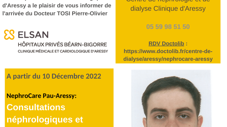 🆕L'équipe de #Néphrologues de la Clinique Médicale et Cardiologique d'Aressy - ELSAN se renforce avec l'arrivée du Docteur Pierre-Olivier TOSI.