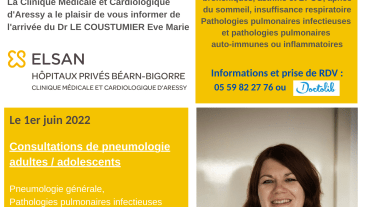 🆕L’équipe de #pneumologie de la Clinique Médicale et Cardiologique d'Aressy - ELSAN, se renforce avec l’arrivée du Docteur Eve Marie LE COUSTUMIER. #pneumologue