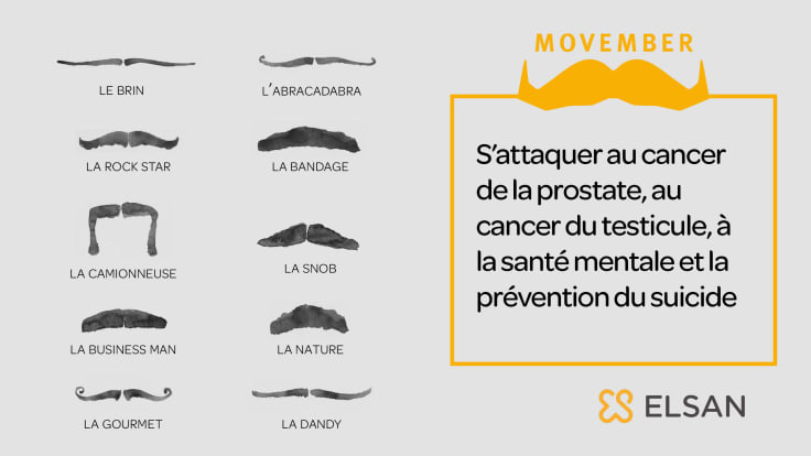 Movember s'attaque au cancer de la prostate, au cancer du testicule, à la santé mentale et à la prévention du suicide.