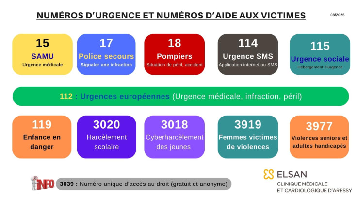 La Clinique médicale et cardiologique d'Aressy - Groupe Elsan a recensé pour vous les principaux numéros d’appel d’urgence et d'accompagnement qui sont mise en place gratuitement par les services publics. 💡