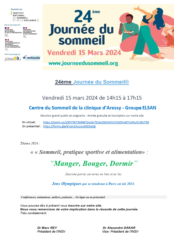 Le centre du sommeil de la Clinique médicale et cardiologique d'Aressy - Groupe Elsan organise des Conférences dans le cadre de la journée du sommeil le vendredi 15 mars 2024.