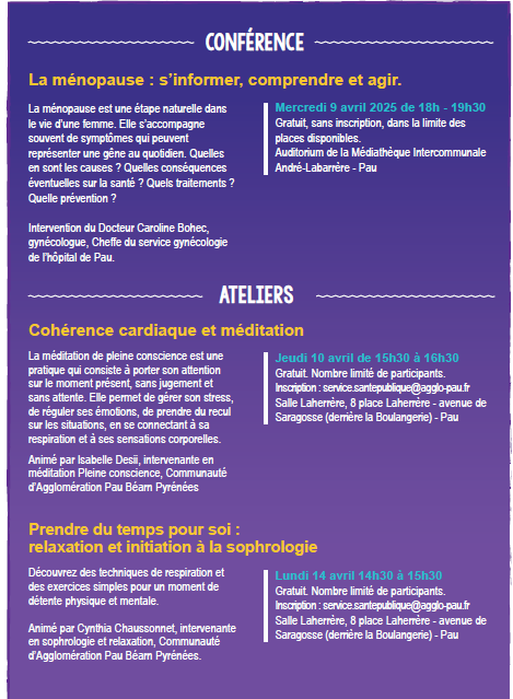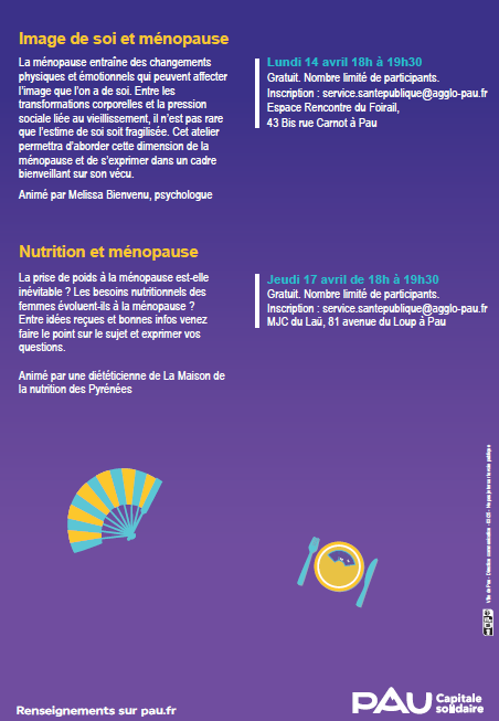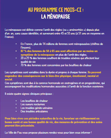 RDV santé organisé par la ville de Pau ce mois d'avril sur le thème de la ménopause.