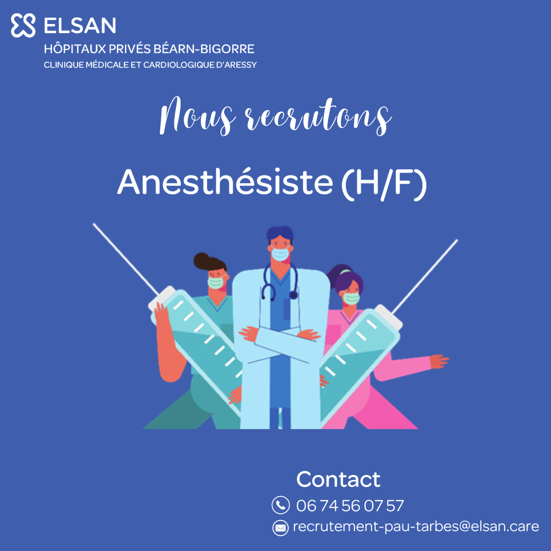 Plus d'informations 👉 https://talents.groupe-elsan.com/fr/annonce/2469453-anesthesiste-hf-64320-aressy