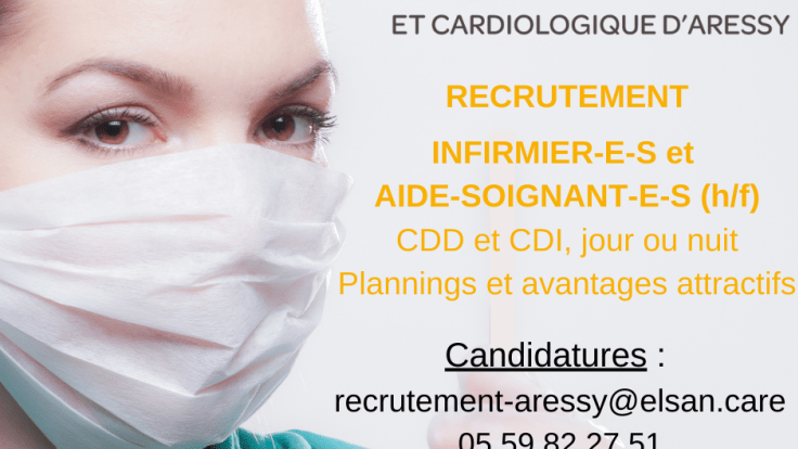 Quelques postes INFIRMIER(E)S et AIDE-SOIGNANT(E)S, de Jour et de nuit en CDI et CDD restent à pourvoir à la Clinique d'Aressy située à 5 minutes de PAU !