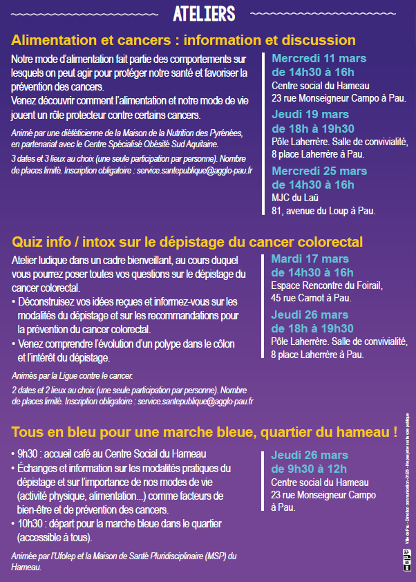 Rendez-vous de la Santé, organisés par Pau, Capitale Humaine, dédiés à la promotion du #dépistage du #cancer colorectal. 💙