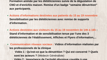 Du 15 au 19 novembre 2021, venez rencontrer Cécile, Coralie et Fabienne sur le stand situé à l’accueil de la clinique de 14H00 à 16H00 ! 🙂