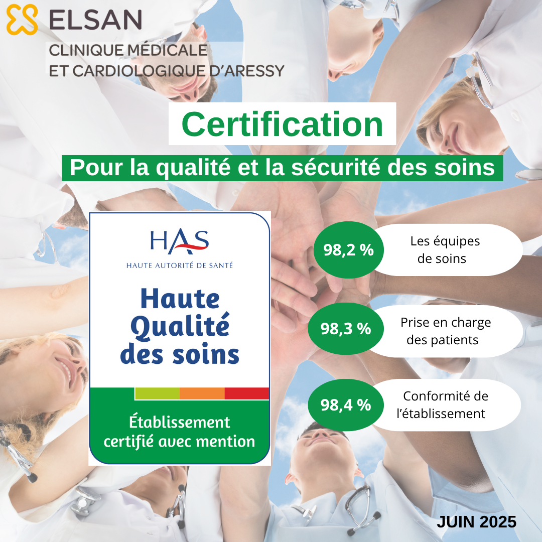 Pour rappel la clinique d'Aressy a atteint la mention « Haute Qualité des Soins » avec un score global de 98,33/100 🎉