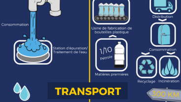 Sources : "Mes courses pour la planète" Centre d'information sur l'eau. Ademe. Syndicat des eaux minérales, SSICE