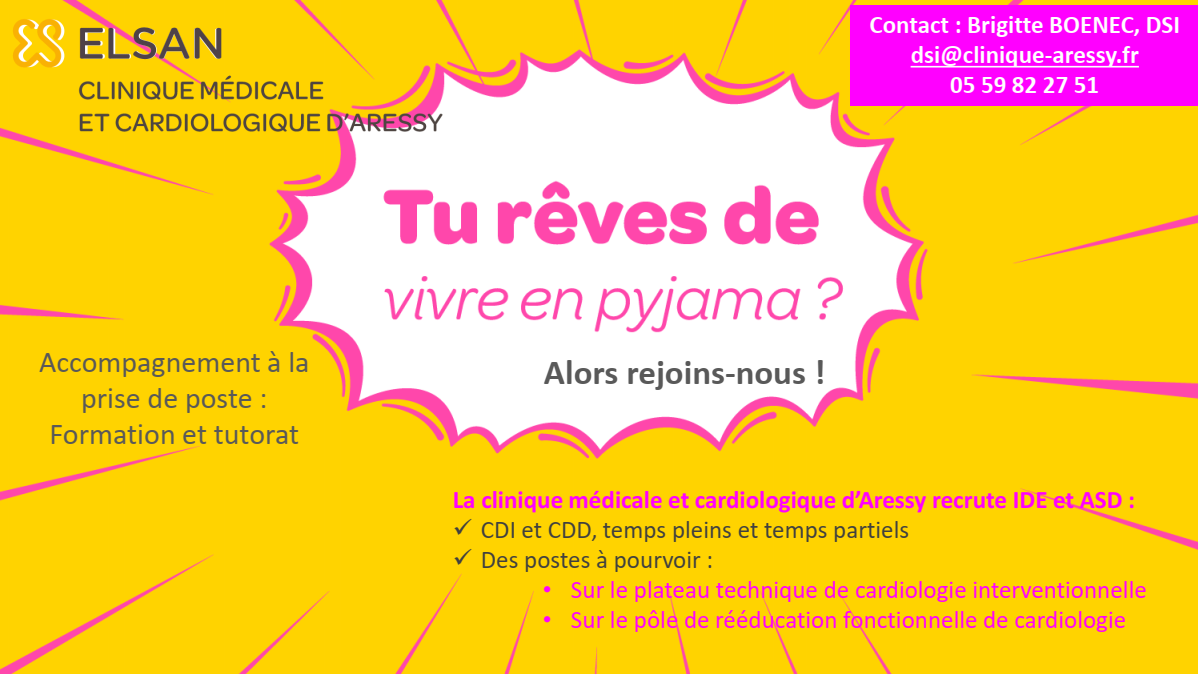 La Clinique Médicale et Cardiologique d'Aressy, groupe Elsan, #RECRUTE des #Infirmier(e)s et des #Aides-soignant(e)s, CDI et CDD.