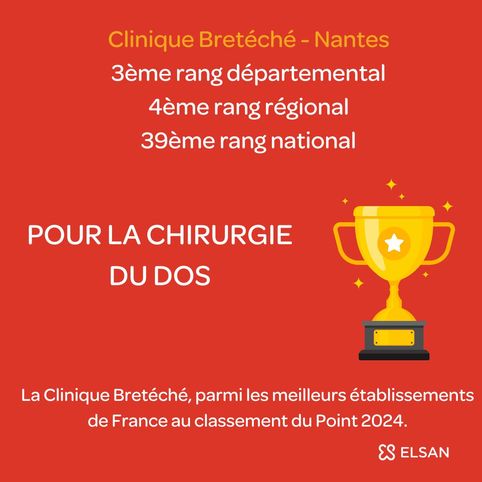 La Clinique Bretéché figure dans le palmarès des meilleurs établissements, hôpitaux et cliniques, du magazine Le Point (publication Déc 2024), dans les spécialités suivantes :