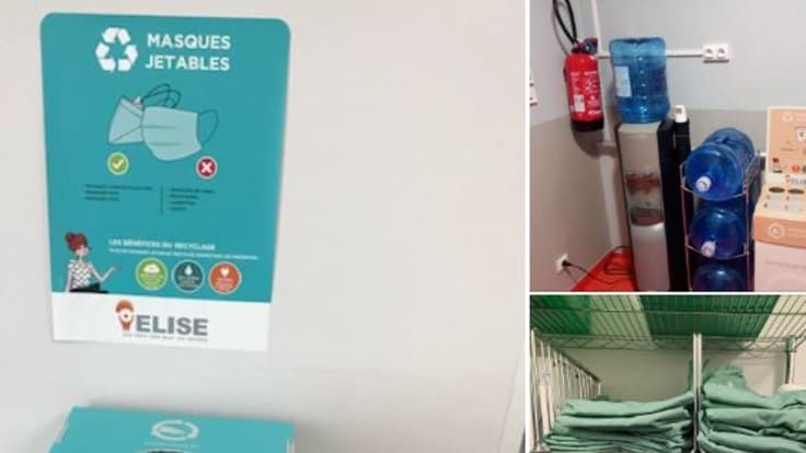 -La mise en place du tri sélectif avec valorisation des déchets sur plusieurs filières : masques, gobelets, déchets cartons et plastiques