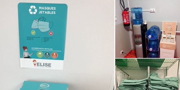 -La mise en place du tri sélectif avec valorisation des déchets sur plusieurs filières : masques, gobelets, déchets cartons et plastiques