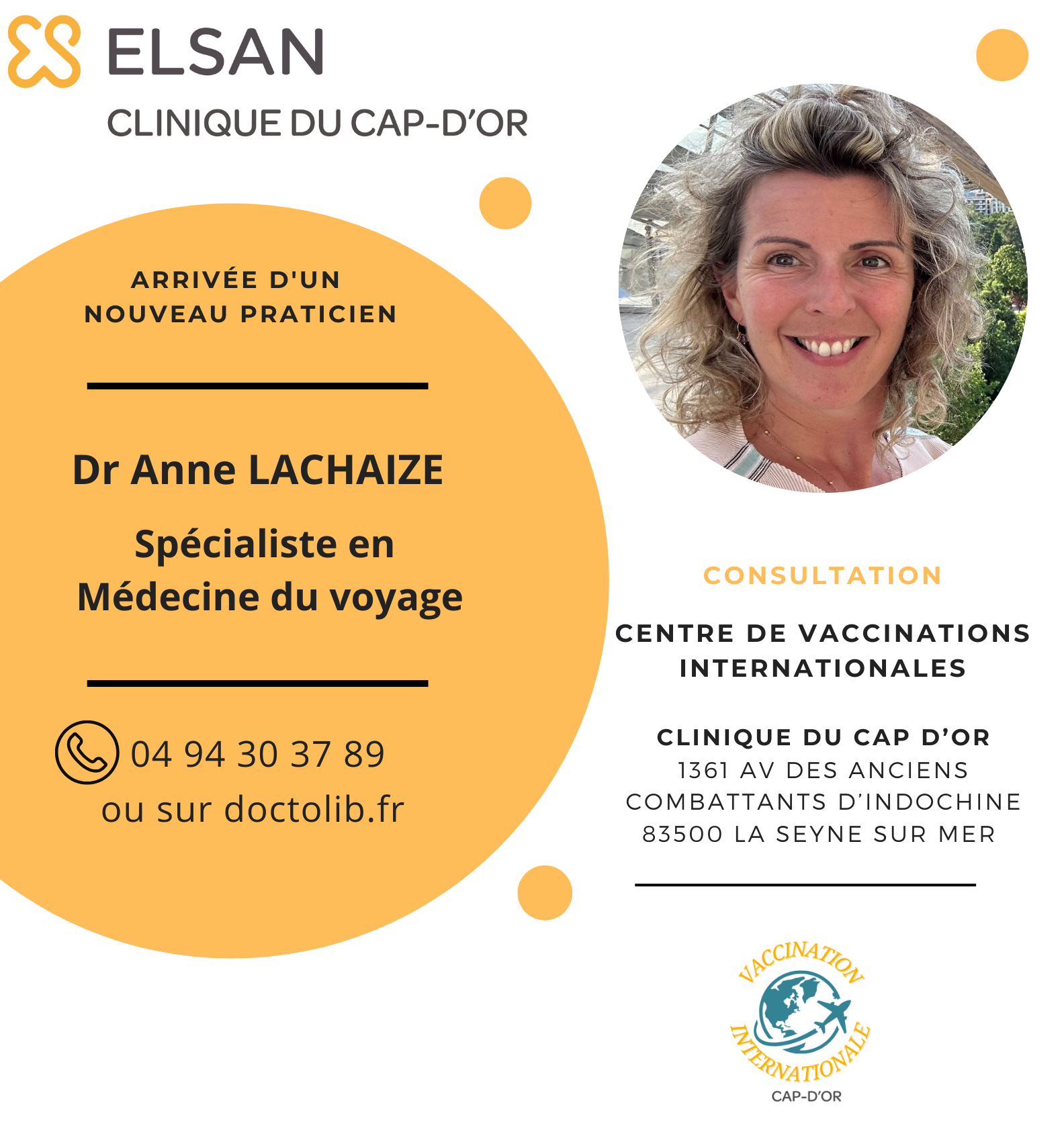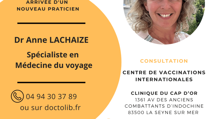 Nous sommes ravis de vous annoncer l'installation du ,Dr Anne LACHAIZE, spécialiste en médecine du voyage.