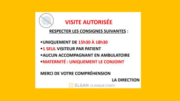 - Visites en hospitalisation uniquement de 15h30 à 18h30