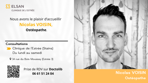 🔊 Nous avons le plaisir d'accueillir M. Nicolas VOISIN Ostéopathe DO, Ostéopathe, au sein de la Clinique de l'Estrée.