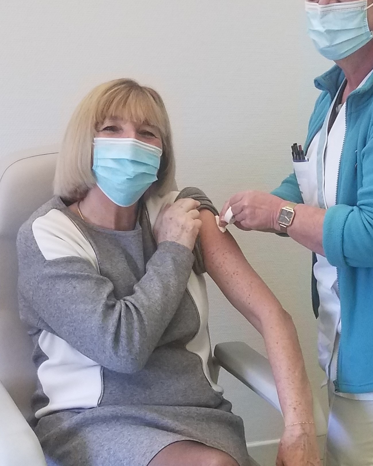 Ici, Christine Cancel, Directrice Générale de la Polyclinique de Poitiers et de la Clinique du Fief de Grimoire se faisant vacciner.