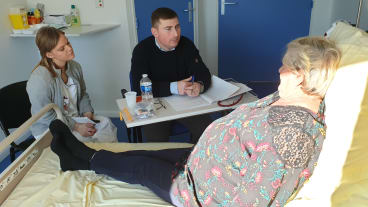 Toute l’équipe du service composée de médecins, une IDE, une aide-soignante, une assistante sociale, un kinésithérapeute, une diététicienne et une secrétaire médicale, accompagne le patient durant sa journée de soins. En fin de journée, ils participent tous à une synthèse afin de réaliser un compte-rendu de chaque évaluation et de faire des propositions au patient, à sa famille et à son médecin adresseur.