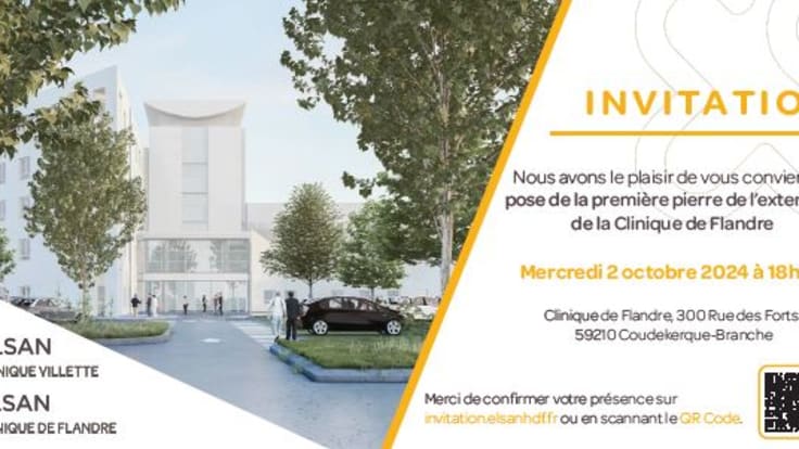 La pose de la première pierre de l’extension de la Clinique de Flandre aura lieu le Mercredi 2 octobre 2024 à 18h30.