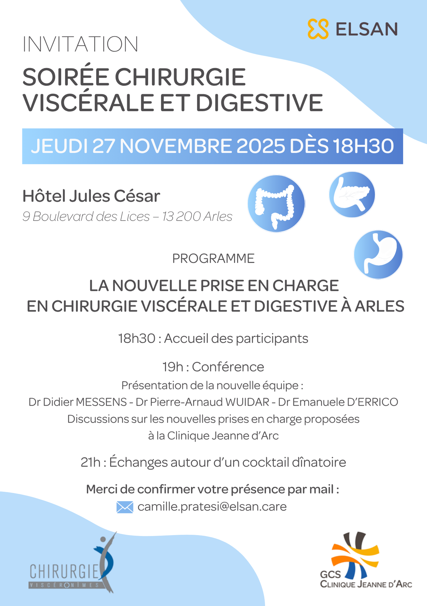 🔹 Confirmez votre présence par email à : camille.pratesi@elsan.care 📧