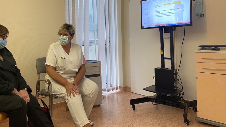 Environ une semaine avant l’intervention chirurgicale, le patient passe une demi-journée à l’Ecole des patients, au cours de laquelle il rencontre, de façon coordonnée, une équipe pluri professionnelle.