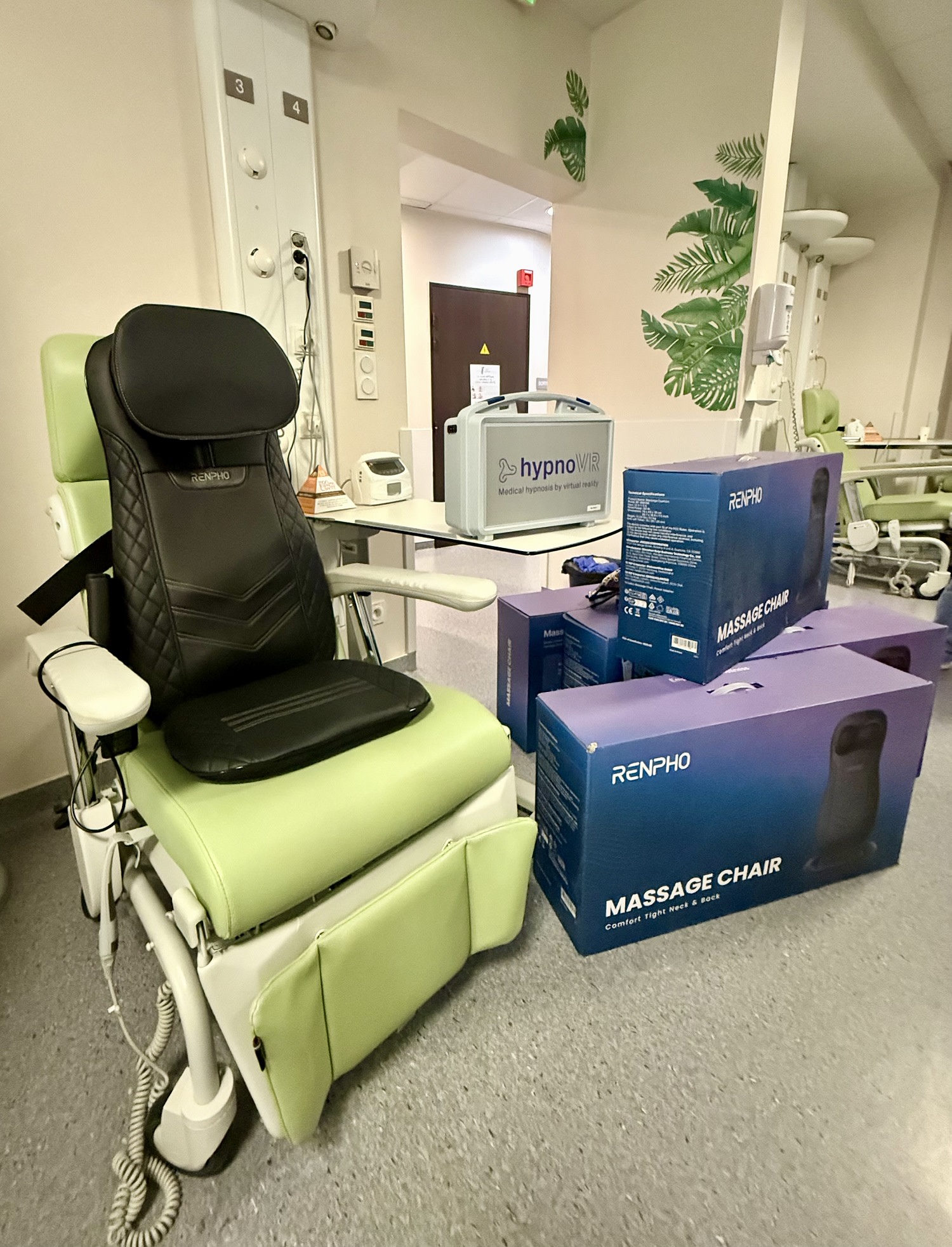 Le casque de réalité virtuelle permet notamment de proposer une parenthèse immersive et relaxante, tandis que les sièges massants favorisent la relaxation physique au cours des soins. Ces dispositifs s’inscrivent pleinement dans la démarche de la clinique visant à placer l’humain et la qualité de l’expérience patient au cœur de la prise en charge.