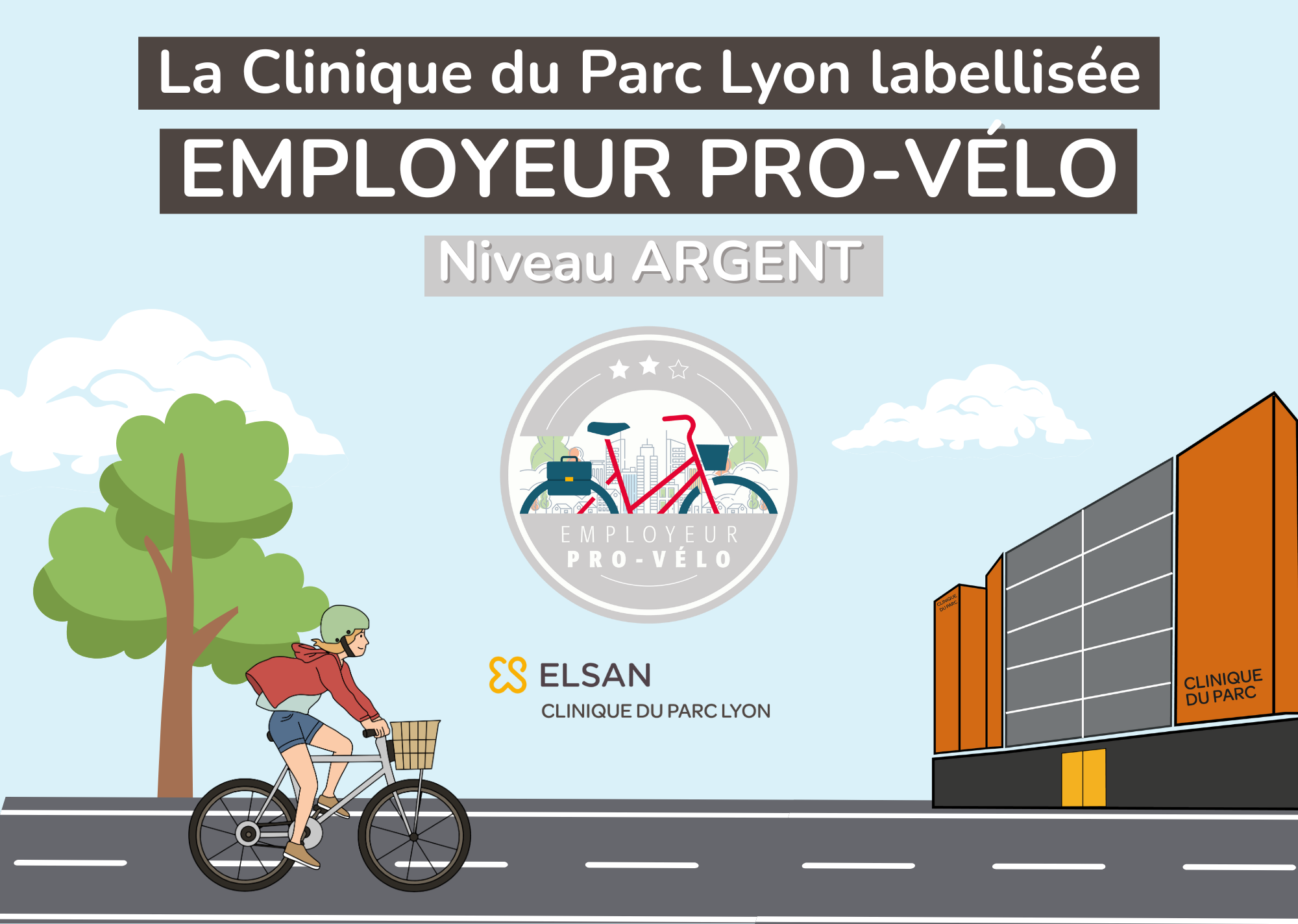 La Clinique du Parc Lyon est fière d’annoncer l’obtention du label Employeur Pro-Vélo niveau Argent, une distinction décernée par la FUB (Fédération française des Usagers de la Bicyclette). Ce label valorise les entreprises et établissements engagés dans la promotion active de la mobilité à vélo.
