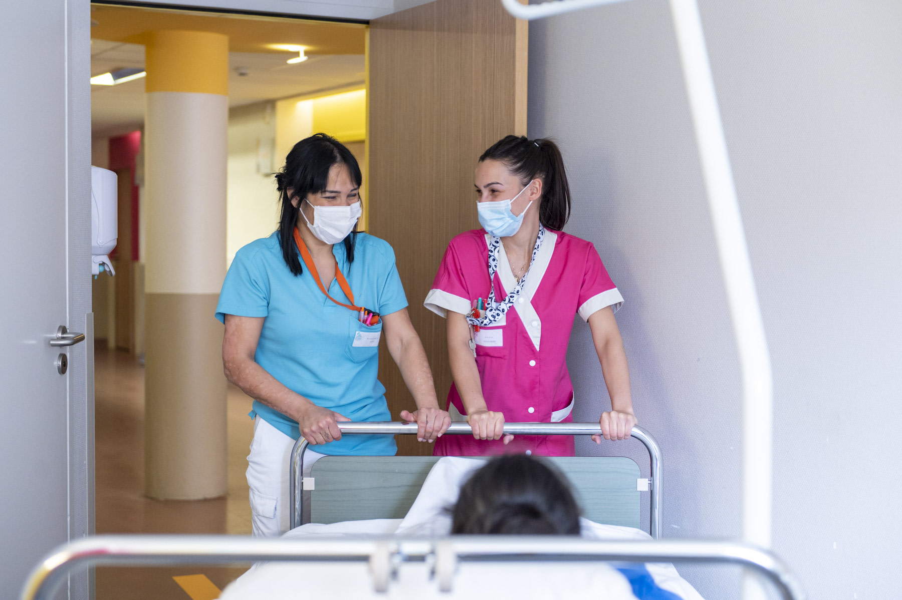 Cadres de santé, équipes soignantes, aides-soignants, infirmiers et brancardiers, l’ensemble de nos équipes médicales et paramédicales sont formées pour prendre en charge nos patients dans la bienveillance et l’écoute. De l’admission à la sortie en passant pas le bloc, les personnels restent à leurs côtés pour les rassurer tout au long de leur séjour.