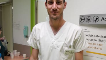 Je n’ai pas beaucoup travaillé avec les IDE et AS sauf pour aider à lever des patients. Notre collaboration consistait plutôt à identifier les difficultés des patients (par exemple ceux qui ont du mal à se lever d’une chaise) et à savoir ce que l’on va pouvoir travailler avec eux.