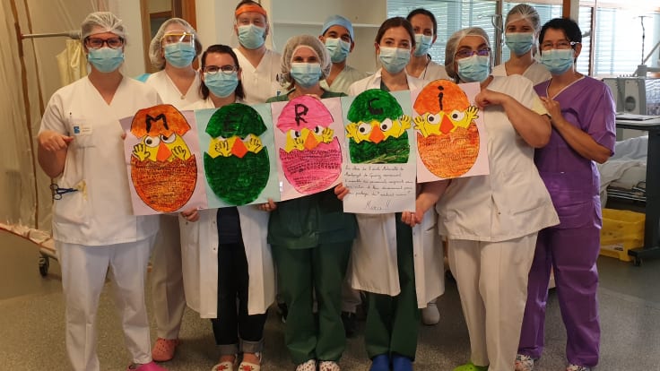 "Les élèves de l'école Maternelle de Montpezat-de-Quercy remercient l'ensemble des personnels soignants pour leur action et leur dévouement pour nous protéger du méchant virus"...