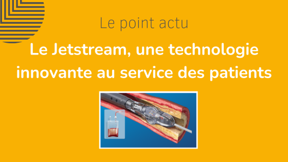Le Jetstream est un cathéter (sonde) de revascularisation de dernière génération, conçu pour le traitement des maladies vasculaires périphériques occlusive. Il permet de réaliser une Athérectomie, c’est-à-dire retirer la plaque d’athérome (cholesterol + calcium) présente à l’intérieur de l’artère et empêchant le passage du sang en direction du pied.