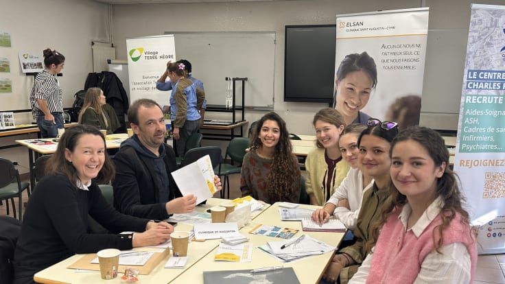 Le vendredi 30 janvier, Marie-Eleonore Souleyreau, directrice des soins de la Clinique Saint-Augustin était aux côtés de Mathieu Darrieutort directeur des soins de la Filière Dialyse Grand Bordeaux, à l’IFSI Bagatelle pour rencontrer les futurs infirmiers.