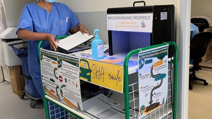 🖐💧A l’occasion de la Journée Mondiale de sensibilisation à l'hygiène des mains, le 5 Mai dernier, Saint-Augustin a poursuivi sa sensibilisation des professionnels de santé sur le thème de l’hygiène des mains et plus particulièrement au bloc opératoire grâce à la « SHA roule ».
